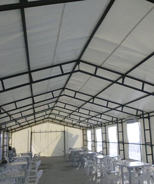 Yemekhane çadırlarımız, geniş alanlar sunarak, kalabalık gruplara rahatça hizmet verebilmenizi sağlar. Hava koşullarından bağımsız olarak, tüm mevsimlerde yemek servisi yapabilmeniz için tasarlanmıştır. Mükemmel havalandırma sistemleri ve geniş giriş alanları ile misafirlerinizin rahatça giriş çıkış yapabilmesini sağlar.